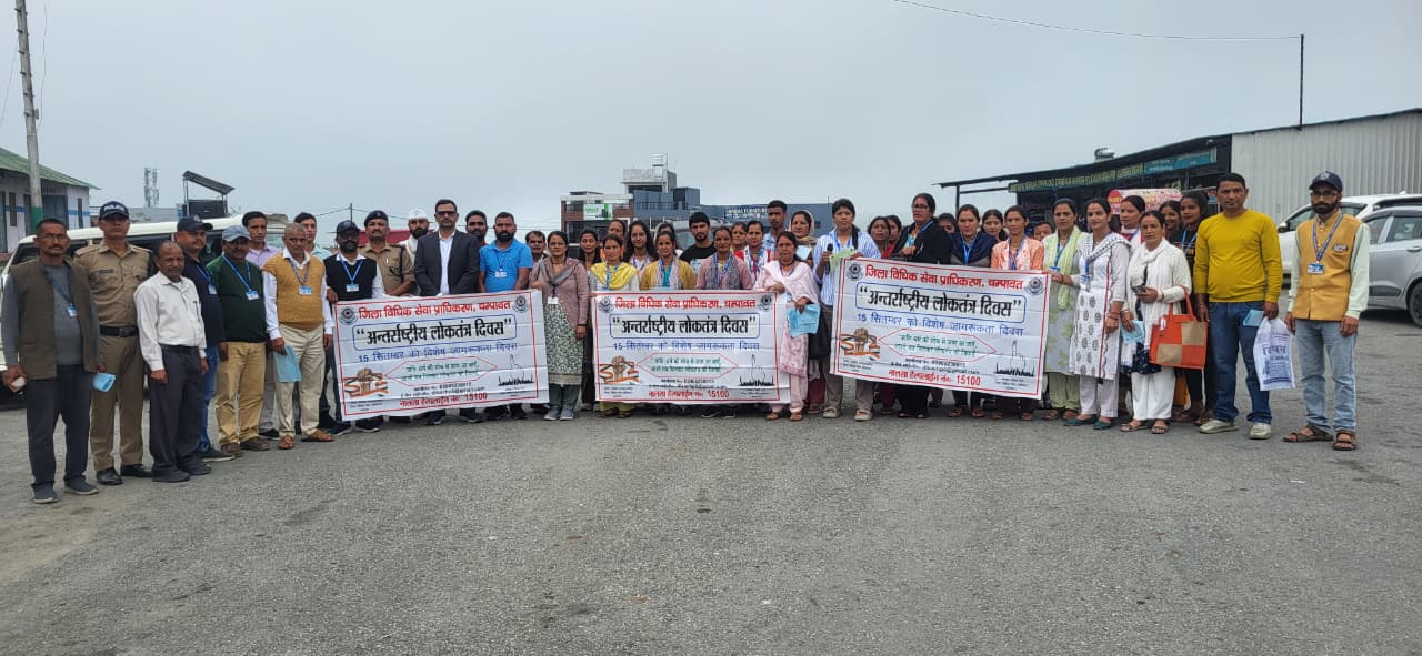 चंपावत में जिला जज एवं जिला विधिक सेवा प्राधिकरण के अध्यक्ष अनुज कुमार संगल के निर्देशन तथा सचिव सिविल जज भवदीप रावते की अगुवाई में किया गया की गयी रैली खटकना पुल से मुख्य बाजार होते हुए रोडवेज स्टेशन तक निकाली गई। इसमें पुलिस प्रशासन तथा पीएलवी गोपाल चन्द्र पाण्डेय, राजेन्द्र जोशी, तनुजा पाण्डेय, गीता भट्ट, रेखा, दीपक, सुमन, सुनीता जोशी, मनिषा और कविता, बृजेश जोशी, कमल राम, हेमलता जोशी रेणनु गढकोटी, मंजू, गीता, शीला तड़ागी आदि ने भाग लिया। इस दौरान लोकतंत्र के महत्व पर जन-जागरूकता संदेश दिए गए और पम्पलेट भी वितरित किए गए।