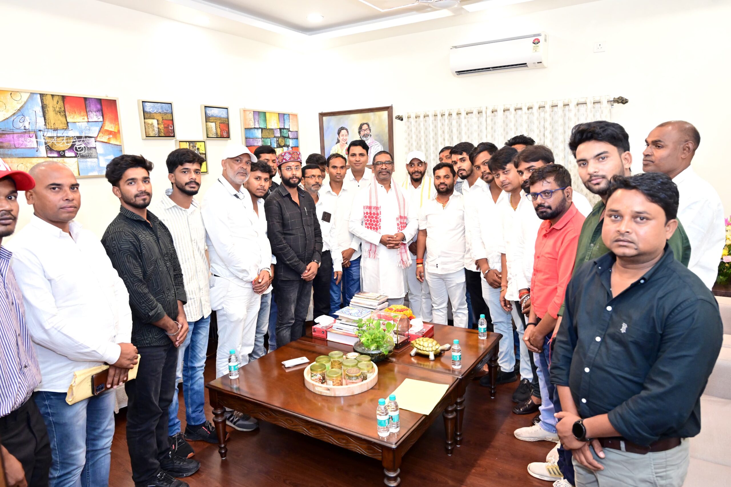 रांची | झारखंड के मुख्यमंत्री हेमन्त सोरेन से मंगलवार को कांके रोड रांची उनके आवासीय कार्यालय में राष्ट्रीय युवा शक्ति के एक प्रतिनिधिमंडल ने मुलाकात की और उनके पैतृक गांव नेमरा की पवित्र मिट्टी उन्हें भेंट की।