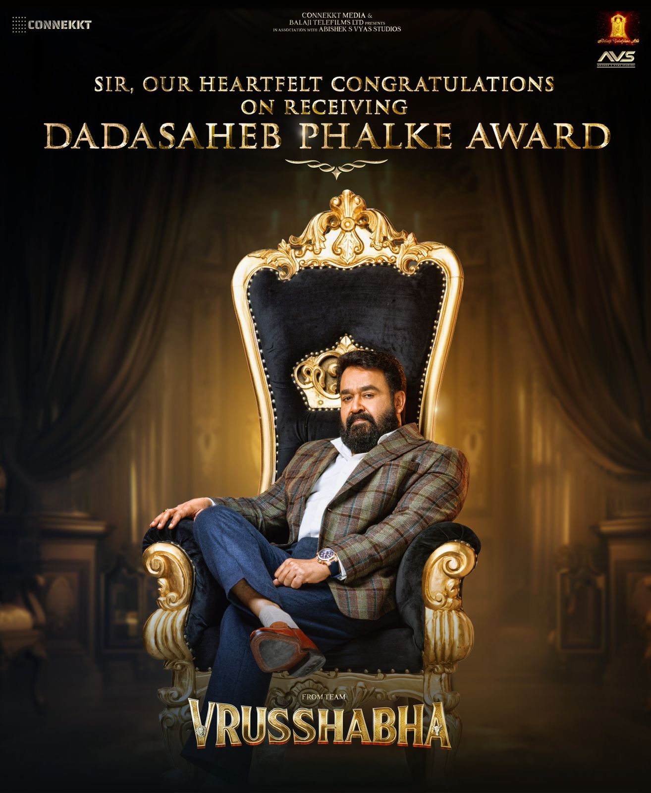 वृषभा | चार दशकों से भी ज्यादा के अपने करियर में 350 से अधिक फिल्मों में अभिनय करने वाले मलयालम सुपरस्टार मोहनलाल विश्वनाथन नायर को वर्ष 2023 के प्रतिष्ठित दादासाहेब फाल्के पुरस्कार से सम्मनित किया जाएगा। अभिनेता की इस खास उपलब्धि को के लिए बहुप्रतीक्षित फिल्म ‘वृषभा’ की टीम ने खुशी और गर्व जाहिर करते हुए बधाइयां दीं।