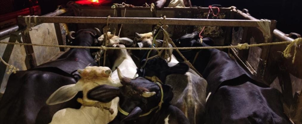 पिकअप वाहन की तलाशी लेने पर उसमें क्रूरतापूर्वक परिवहन किए जा रहे 09 मवेशी बरामद किए गए। पुलिस ने चारों पशु तस्करों को गिरफ्तार कर लिया और आगे की कार्रवाई शुरू कर दी है। बरामद सामानों में एक पिकअप वाहन और 09 मवेशी शामिल हैं। पुलिस ने मामला दर्ज कर आगे की जांच और कार्रवाई शुरू कर दी है।