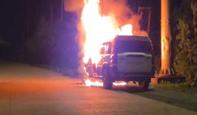 कोंडागांव | जिले के मसोरा टोल के पास अचानक से बीती देर रात एक चलती हुई स्कार्पियाे वाहन में अचानक से धुआं निकलना शुरू हो गया। धुएं को देख चालक ने गाड़ी को सड़क किनारे खड़े कर दिया और बाहर निकल गया। देखते ही देखते वाहन में आग तेजी से फैलने लगी। आस-पास के लोगों ने इसकी सूचना पुलिस और दमकल विभाग को दी। सूचना मिलते ही दमकल की गाड़ियां मौके पर पहुंचकर आग पर काबू पाया। लेकिन इस दाैरान पूरी स्कार्पियाे वाहन आग में जलकर खाक हो गई, इस वाहन में नंबर प्लेट भी नहीं था।