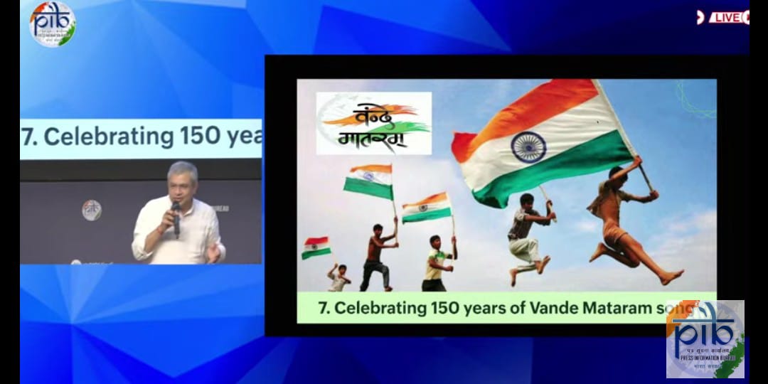 नई दिल्ली : केंद्र सरकार राष्ट्रीय गीत वंदे मातरम् के 150 साल पूरे होने का उत्सव देशभर में मनाएगी।प्रधानमंत्री नरेन्द्र मोदी की अध्यक्षता में बुधवार को हुई मंत्रिमंडल की बैठक में देशभर में इससे जुड़े कई आयोजनों को मंजूरी दी गयी। सूचना एवं प्रसारण मंत्री अश्विनी वैष्णव ने नेशनल मीडिया सेंटर में पत्रकार वार्ता में बताया कि इस साल राष्ट्रीय गीत के 150 साल पूरे हो रहे हैं।