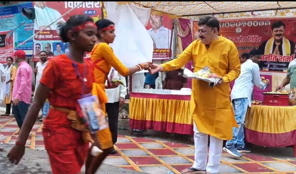 भागलपुर | भागलपुर के कचहरी चौक पर श्रावणी मेले को लेकर नगर विधायक अजीत शर्मा ने रविवार काे सेवा शिविर लगाया । इस दौरान विधायक शर्मा डाक बम कांवरियों की सेवा कर धार्मिक भावना का परिचय दिया। विधायक ने कांवरियों के बीच फल और शरबत का वितरण किया।