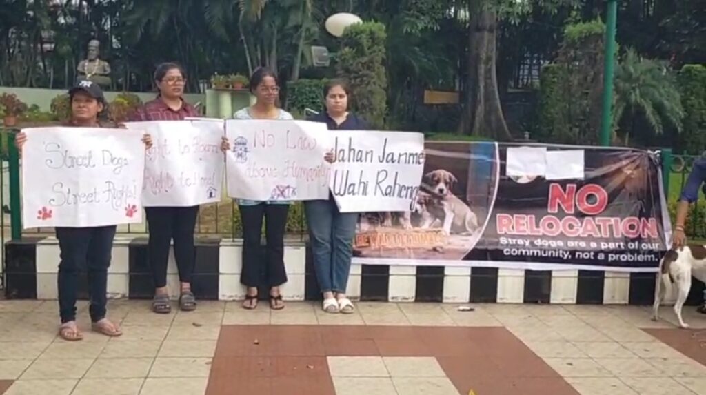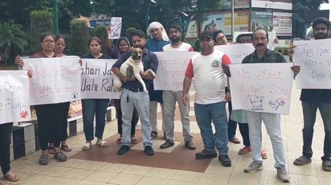 पूर्वी सिंहभूम | सुप्रीम कोर्ट के हालिया आदेश, जिसमें आवारा कुत्तों को सड़कों से हटाकर शेल्टर होम में रखने की बात कही गई है, के खिलाफ रविवार को बिष्टुपुर स्थित रिगल मैदान के सामने कुत्ता प्रेमी सड़क पर उतर आए। प्रदर्शनकारियों ने अपने साथ स्ट्रीट डॉग्स को भी लाया और हाथों में बैनर-पोस्टर लेकर नारे लगाए ।