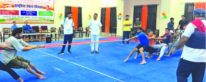 इस अवसर पएसोसिएट प्रोफेसर डॉ. शिवकुमार चौहान ने कहा कि स्वस्थ्य रहने के लिए प्रसन्न रहना अत्यन्त आवश्यक है। युवाओं को सप्ताह में तीन दिन साइकिलिंग एवं ट्रैकिंग अवश्य करनी चाहिए। तीन दिवसीय राष्ट्रीय खेल दिवस के अंतर्गत सामाजिक जागरूकता, व्याख्यानमाला, स्वस्थ्य जीवन के लिए योग, कबड्डी प्रतियोगिता, टग ऑफ वार (रस्साकसी) जैसी गतिविधियों का आयोजन किया गया।