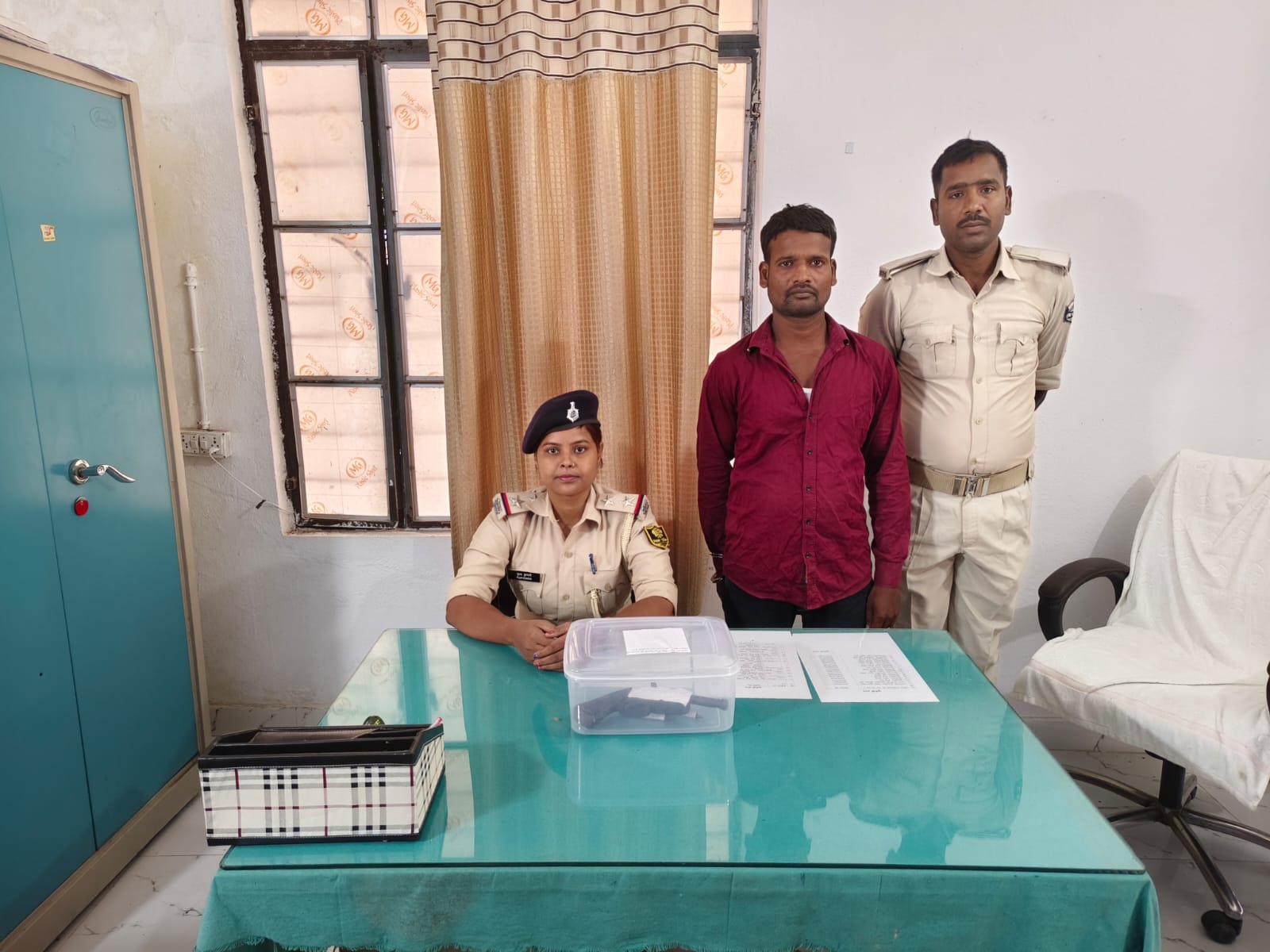 सूचना मिलते ही थानाध्यक्ष अपने दल-बल के साथ मौके पर पहुंचे। पुलिस की गाड़ी देखते ही संदिग्ध युवक भागने की कोशिश करने लगा, लेकिन तत्परता दिखाते हुए पुलिस के जवानो उसे दौड़कर पकड़ लिया। तलाशी के दौरान उसके पास से एक देशी कट्टा और दो जिंदा कारतूस बरामद किए गए।