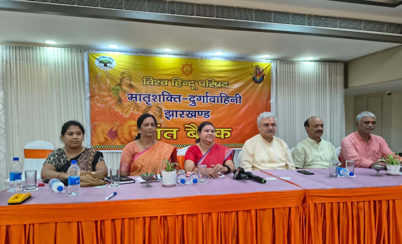 रांची । विश्व हिंदू परिषद् की महिला इकाई मातृ शक्ति /दुर्गा वाहिनी के द्वारा होटल ग्रीन होरीजाइन, स्टेशन रोड , रांची में एक दिवसीय प्रांत स्तरीय वार्षिक बैठक की गई। बैठक में मुख्य वक्ता के रूप में क्षेत्रीय मातृशक्ति प्रमुख आदरणीय डॉ० शोभा रानी दीदी ने कहां कि दूगीवाहिनी एवं मातृशक्ति की धर्म को बचाकर सुरक्षित रखने में महत्वपूर्ण भूमिका हैं संगठन की स्थापना निराशा जनक परिस्थियों में हुई थी।