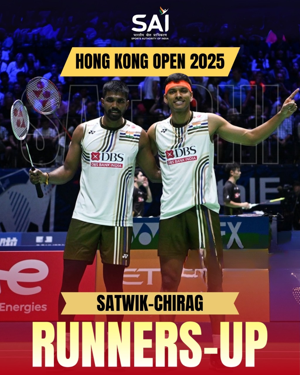 नई दिल्ली | भारत की पुरुष युगल जोड़ी सात्विकसाईराज रंकीरेड्डी और चिराग शेट्टी को रविवार को हॉन्ग कॉन्ग ओपन सुपर 500 बैडमिंटन फाइनल में हार के साथ रजत पदक से संतोष करना पड़ा। चीन की जोड़ी लियांग वेई केंग और वांग चांग ने करीब 62 मिनट तक चले फाइनल में 21-19, 14-21, 17-21 से जीत दर्ज की और खिताब अपने नाम किया।