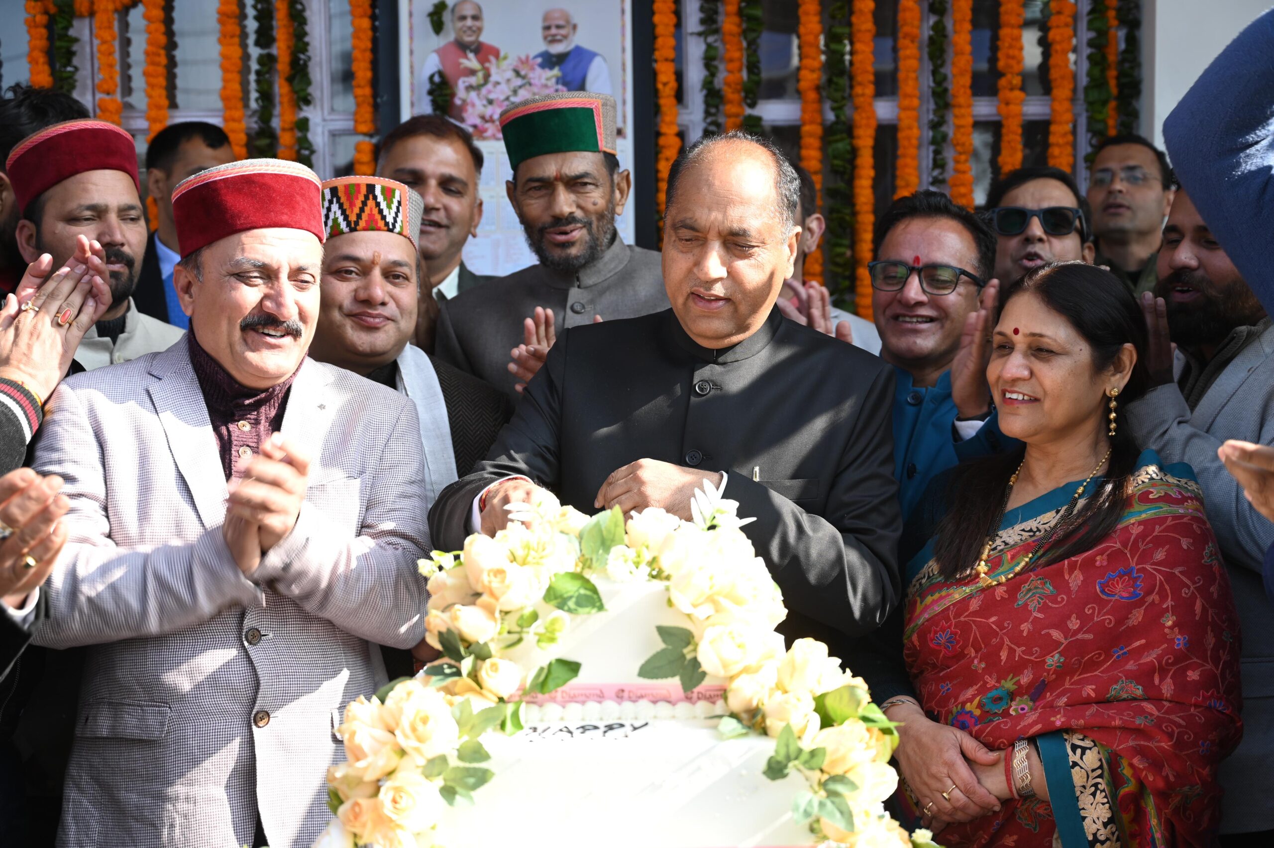 60 किलो का केक काटकर मनाया पूर्व मुख्यमंत्री जयराम ठाकुर का जन्मदिन