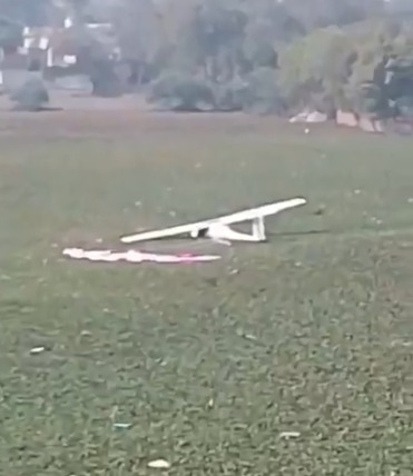 प्रत्यक्षदर्शी सुरेंद्र कुमार ने बताया कि उन्होंने आसमान में विमान को असामान्य रूप से डगमगाते हुए देखा। कुछ ही क्षणों में विमान से दो पैराशूट खुलते नजर आए, जिनकी मदद से दोनों पायलट विमान के गिरने से पहले ही सुरक्षित रूप से नीचे उतरने लगे। इसके बाद विमान तेज आवाज के साथ तालाब के बीचों-बीच जा गिरा। तालाब में पानी होने के कारण विमान में आग नहीं लगी, जिससे एक बड़ी दुर्घटना टल गई।