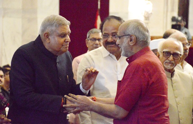 धनखड़ ने राधाकृष्णन को नए कार्यकाल के लिए शुभकामनाएं देते हुए कहा कि उनका अनुभव और नेतृत्व क्षमता राष्ट्रहित में नए अध्याय लिखेगी। कार्यक्रम में पूर्व उपराष्ट्रपति हामिद अंसारी भी मौजूद रहे।