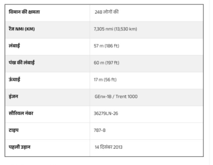 एयर इंडिया AI171 दुर्घटना में शामिल विमान बोइंग 787-8 ड्रीमलाइनर है, इसका पंजीकरण नंबर VT-ANB और सीरियल नंबर 36279 है। विमान की पहली उड़ान 2013-12-14 को हुई थी और इसे जनवरी 2014 में एयर इंडिया को सौंप दिया गया था।