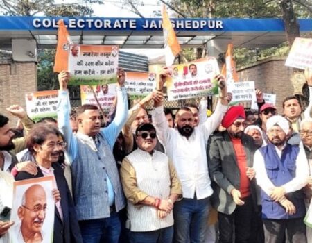मनरेगा का नाम बदलने के प्रस्ताव पर पूर्वी सिंहभूम में कांग्रेस का प्रदर्शन, केंद्र सरकार पर साधा निशाना