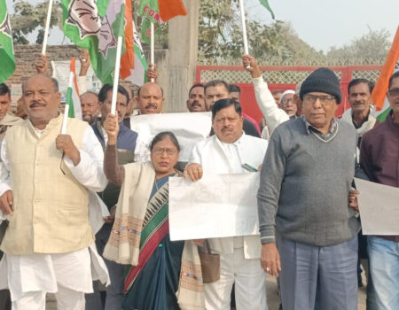 ईडी कार्रवाई के विरोध में कांग्रेस का प्रदर्शन, पलामू में भाजपा कार्यालय के पास धरना