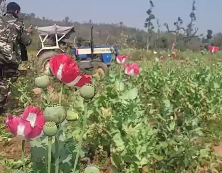 लातेहार पुलिस ने ट्रैक्टर से 30 एकड़ अफीम की अवैध खेती नष्ट की, नशे के कारोबार पर सख्त कार्रवाई
