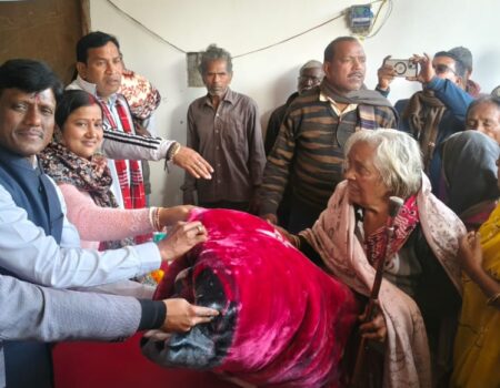 शीतलहरी के बीच जरूरतमंदों को राहत, बाघमारा में 300 कंबलों का वितरण