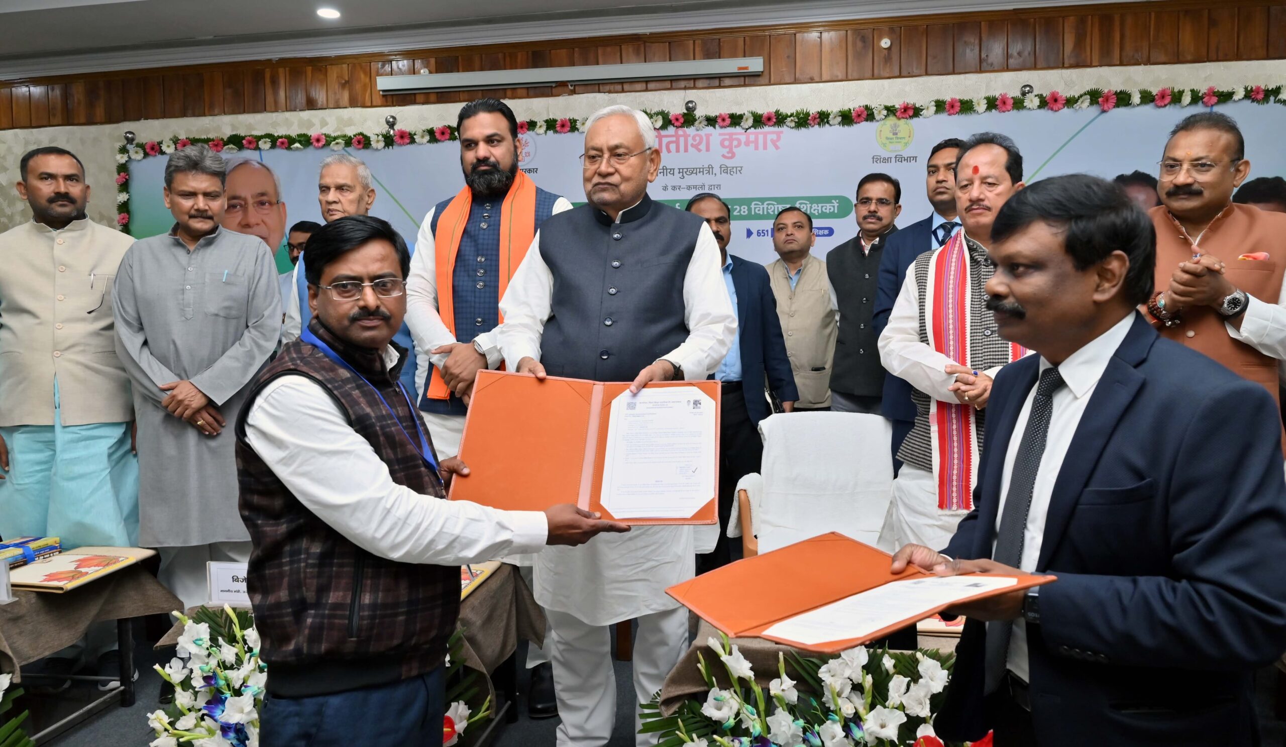 मुख्यमंत्री नीतीश कुमार अपने जन्मदिन पर नवनियुक्त शिक्षकों को नियुक्ति पत्र वितरित करते हुए