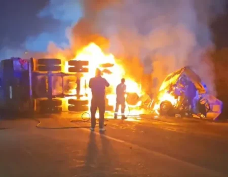 2 ट्रकों के बीच हुई भीषण टक्कर,आग की चपेट में आने से जिंदा जला ड्राइवर