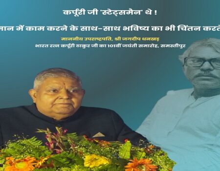 जननायक कर्पूरी ठाकुर सामाजिक न्याय के मसीहा थे : उपराष्ट्रपति