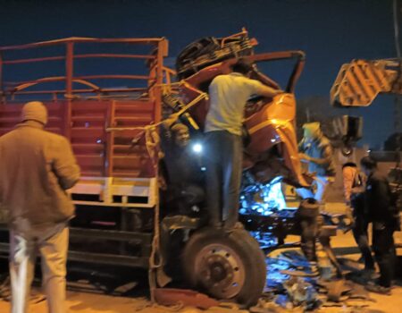 ट्रक हाईवा की भीषण टक्कर में घंटो लगा रहा जाम: ड्राईवर फरार