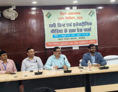 अररिया | जिला निर्वाचन पदाधिकारी सह जिलाधिकारी अनिल कुमार की अध्यक्षता में समाहरणालय स्थित परमान सभागार में विधानसभा चुनाव की अधिसूचना निर्गत होने पर प्रेस कॉन्फ्रेंस का आयोजन किया गया।