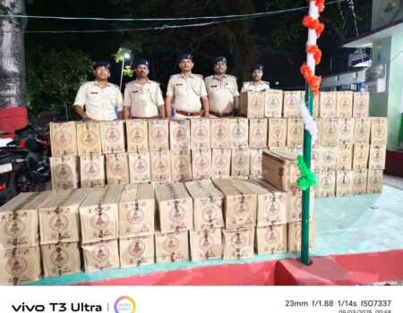 पूर्वी चंपारण | जिले के पीपराकोठी थाना पुलिस ने वाहन ढोने वाली एक कंटेनर लाॅरी ट्रक से 132 पेटी विदेशी शराब की एक बड़ी खेप बरामद करते हुए शराब तस्करी के एक अंतरराज्यीय गिरोह का खुलासा किया है।बरामद शराब कंटेनर लाॅरी ट्रक पर लदी 8 नई अल्टो कारों के अंदर छिपाकर रखी गई थी।पकड़े गये विदेशी शराब की कीमत 20 लाख रूपये से ज्यादा आंकी गई है।