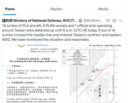 ताइवान के आसपास चीन ने सैन्य हलचल तेज की, नौ विमान एडीआईजेड में घुसे