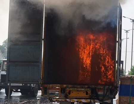 फ्रिज लोडेड कंटेनर में लगी आग, हुआ लाखों का नुकसान