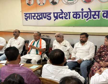 झारखंड प्रदेश कांग्रेस कमेटी की कार्यकारिणी बैठक आज प्रदेश कार्यालय में आयोजित की गई। बैठक की अध्यक्षता पार्टी के प्रदेश प्रभारी के. राजू और प्रदेश अध्यक्ष केशव महतो कमलेश ने संयुक्त रूप से की। कार्यक्रम की शुरुआत में प्रदेश प्रभारी के. राजू का स्वागत पुष्पगुच्छ भेंट कर किया गया।