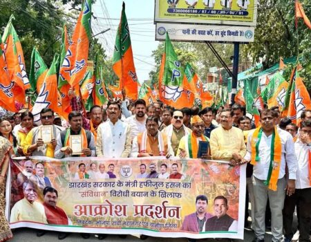आज रांची ग्रामीण और महानगर भाजपा के संयुक्त तत्वावधान में जोरदार प्रदर्शन हुआ। प्रदर्शन का नेतृत्व प्रदेश अध्यक्ष एवं नेता प्रतिपक्ष बाबूलाल मरांडी, कार्यकारी अध्यक्ष डॉ रविंद्र कुमार राय, निवर्तमान अध्यक्ष एवं सांसद दीपक प्रकाश, प्रदेश संगठन महामंत्री कर्मवीर सिंह, प्रदेश महामंत्री एवम सांसद आदित्य साहू, डॉ प्रदीप वर्मा, विधायक सीपी सिंह, नवीन जायसवाल, उपाध्यक्ष राकेश प्रसाद, आरती कुजूर, जिलाध्यक्ष वरुण साहू, विनय महतो सहित पार्टी के प्रदेश जिला के पदाधिकारीगण ने किया।