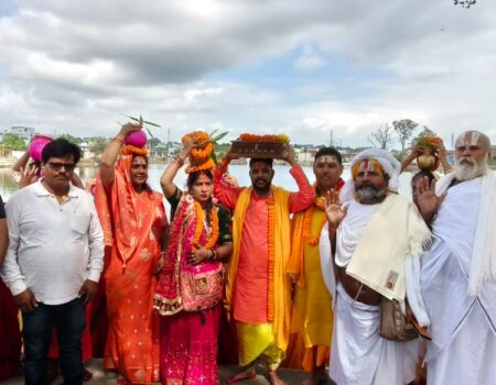 बाघमारा | जमुआटांड शास्त्री नगर में आयोजित संगीतमय श्रीमद्भागवत महापुराण कथा को लेकर आज भव्य कलश सह शोभा यात्रा निकाली गई। कलश यात्रा मंडप परिषर से निकल कर सायर बांध पहुंची। जहां विद्वान पंडितो द्वारा वैदिक मंत्रोच्चार के साथ 251 कलशों में जलाभरण किया गया।