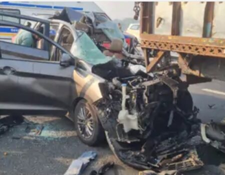 वडोदरा/सूरत : दिल्ली–मुंबई एक्सप्रेसवे पर हादसों का सिलसिला लगातार जारी है। गुरुवार सुबह एक कार और ट्रक की भीषण टक्कर में कार सवार दो लोगों की मौके पर ही मौत हो गई, जबकि दो गंभीर रूप से घायल हो गए। यह हादसा एक्सप्रेसवे पर दो दिनों में दूसरा बड़ा दुर्घटना है।