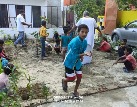 18 बालिकाओं ने सहजन के 18 पाैधे अष्टादशी वाटिका में रोपे