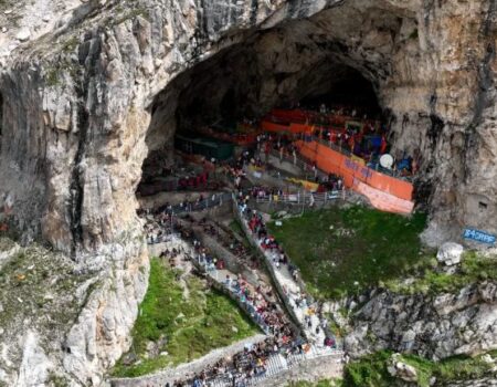 рджрдХреНрд╖рд┐рдг рдХрд╢реНрдореАрд░ рд╣рд┐рдорд╛рд▓рдп рдореЗрдВ рд╕реНрдерд┐рдд рдкрд╡рд┐рддреНрд░ рдЕрдорд░рдирд╛рде рдЧреБрдлрд╛ рдореЗрдВ рджрд░реНрд╢рди рдХреЗ рд▓рд┐рдП 6,639 рддреАрд░реНрдердпрд╛рддреНрд░рд┐рдпреЛрдВ рдХрд╛ 11рд╡рд╛рдВ рдЬрддреНрдерд╛ рд╢рдирд┐рд╡рд╛рд░ рдХреЛ рдЬрдореНрдореВ рдХреЗ рднрдЧрд╡рддреА