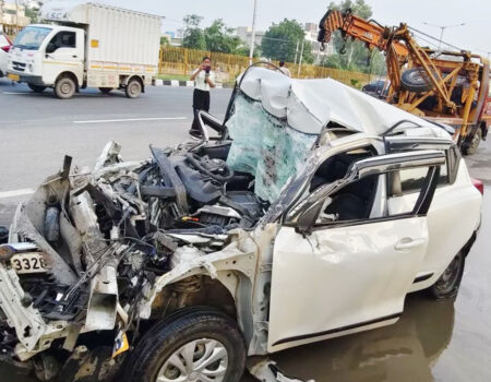 рдлрд░реАрджрд╛рдмрд╛рдж : рдлреНрд▓рд╛рдИрдУрд╡рд░ рдкрд░ рдЦрдбрд╝реЗ рдХреИрдВрдЯрд░ рдореЗрдВ рдШреБрд╕реА рдХрд╛рд░,рдПрдХ рдШрд╛рдпрд▓