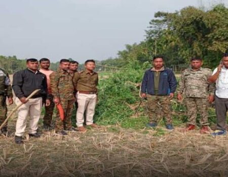 बानरहाट थाने की पुलिस नेलौकी, मिर्ची और बैंगन के पेड़ों की आड़ में चल रहा गांजे की खेती को नष्ट कर दिया है। गुप्त सूचना मिलने के बाद पुलिस ने छापेमारी कर लाखों रुपये की खेती किये गये गांजे को नष्ट कर दिया।