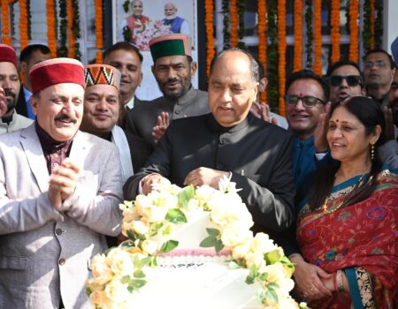 60 किलो का केक काटकर मनाया पूर्व मुख्यमंत्री जयराम ठाकुर का जन्मदिन