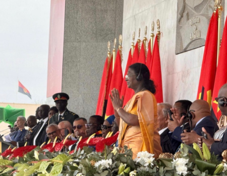 рдирдИ рджрд┐рд▓реНрд▓реАред рд░рд╛рд╖реНрдЯреНрд░рдкрддрд┐ рджреНрд░реМрдкрджреА рдореБрд░реНрдореБ рдиреЗ рдЕрдВрдЧреЛрд▓рд╛ рдХреЗ рд░рд╛рд╖реНрдЯреНрд░рдкрддрд┐ рдЬреЛрдЖрдУ рдореИрдиреБрдПрд▓ рдЧреЛрдВрд╕рд╛рд▓реНрд╡реЗрд╕ рд▓реЛрд░реЗрдиреНрд╕реЛ рдХреЗ рдЖрдордВрддреНрд░рдг рдкрд░ рдЕрдВрдЧреЛрд▓рд╛ рдХреА рд╕реНрд╡рддрдВрддреНрд░рддрд╛ рдХреА 50рд╡реАрдВ рд╡рд░реНрд╖рдЧрд╛рдВрда рдХреЗ рдЕрд╡рд╕рд░ рдкрд░ рдЖрдпреЛрдЬрд┐рдд рднрд╡реНрдп рд╕рдорд╛рд░реЛрд╣ рдореЗрдВ рднрд╛рдЧ рд▓рд┐рдпрд╛ред
