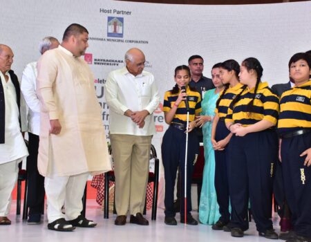 गांधीनगर | गुजरात के मुख्यमंत्री भूपेंद्र पटेल शनिवार को इलेट्स अर्बन इनोवेशन एंड इन्फ्रास्ट्रक्चर समिट में सहभागी हुए। वडोदरा के लोगों को फिर एक बार बच्चों के प्रति प्रेम एवं सरलता(ऋजुता) का मुख्यमंत्री का सानिध्य मिला। इलेट्स अर्बन इनोवेशन एंड इन्फ्रास्ट्रक्चर समिट में सहभागी हुए मुख्यमंत्री ने एक प्रज्ञाचक्षु (नेत्रहीन) छात्रा को स्टेज पर माइक दिलाकर उसकी बातें स्नेहपूर्वक सुनीं।