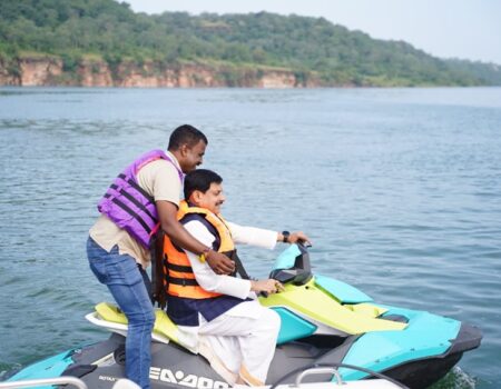 मुख्यमंत्री ने चंबल नदी में बोटिंग की, बाइक बोटिंग कर लिया प्राकृतिक सौंदर्य का आनंद