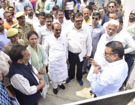 लखीमपुर खीरी | उप्र के जल शक्ति मंत्री स्वतंत्र देव सिंह गुरुवार को प्रमुख सचिव सिंचाई अनिल गर्ग के साथ शारदा बैराज पहुँचे। बैराज परिसर में जिलाधिकारी दुर्गा शक्ति नागपाल और एसपी संकल्प शर्मा ने उनका स्वागत किया। मंत्री ने विभागीय और प्रशासनिक अधिकारियों के साथ बैराज का स्थलीय निरीक्षण किया और आवश्यक दिशा-निर्देश दिए।