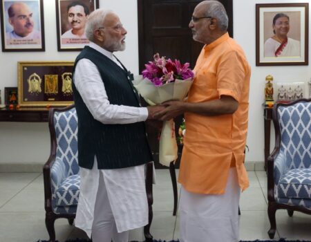 рдкреНрд░рдзрд╛рдирдордВрддреНрд░реА рдореЛрджреА рдиреЗ рдирд╡рдирд┐рд░реНрд╡рд╛рдЪрд┐рдд рдЙрдкрд░рд╛рд╖реНрдЯреНрд░рдкрддрд┐ рд╕реАрдкреА рд░рд╛рдзрд╛рдХреГрд╖реНрдгрди рд╕реЗ рдореБрд▓рд╛рдХрд╛рдд рдХрд░ рджреА рдмрдзрд╛рдИ