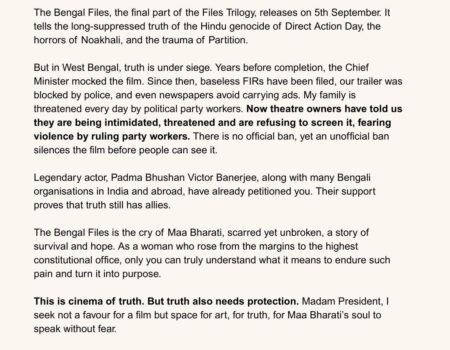`рдж рдмрдВрдЧрд╛рд▓ рдлрд╛рдЗрд▓реНрд╕’ рдкрд╢реНрдЪрд┐рдо рдмрдВрдЧрд╛рд▓ рдореЗрдВ рдирд╣реАрдВ рд╣реЛ рдкрд╛ рд░рд╣реА рд░рд┐рд▓реАрдЬ, рдирд┐рд░реНрдорд╛рддрд╛ рдиреЗ рд░рд╛рд╖реНрдЯреНрд░рдкрддрд┐ рд╕реЗ рд▓рдЧрд╛рдИ рдЧреБрд╣рд╛рд░