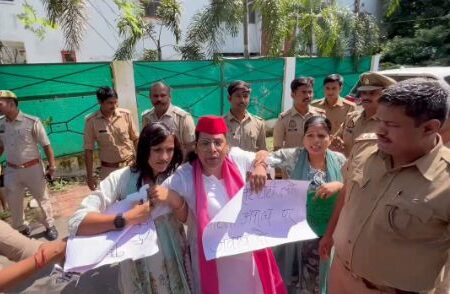 सपा महिला सभा की कार्यकर्ताओं ने भाजपा विधायक केतकी सिंह के आवास का किया घेराव