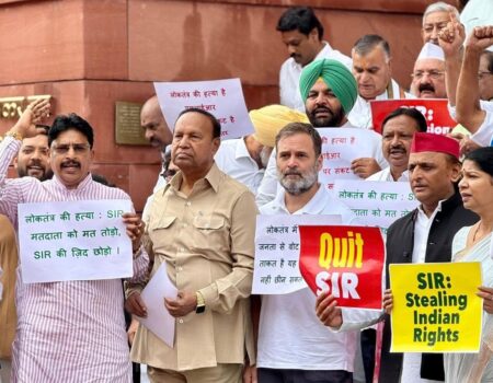 वोटर वेरिफिकेशन और चुनाव में वोट चोरी के आरोप पर विपक्ष के 300 सांसदों ने सोमवार को संसद से चुनाव आयोग के ऑफिस तक मार्च निकाला। इस दौरान राहुल गांधी, प्रियंका गांधी, अखिलेश यादव समेत कई विपक्षी सांसदों को हिरासत में ले लिया गया। इसके बाद उन्हें पार्लियामेंट पुलिस स्टेशन ले गई।