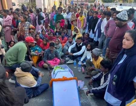 सीआईपी के बाहर शव रखकर धरना, सफाईकर्मी की मौत पर मुआवजा व जांच की मांग