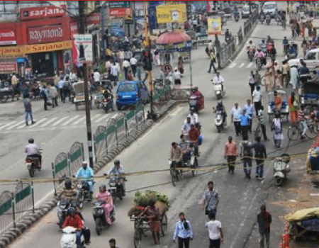 पैदल यात्रियों की सुरक्षा को लेकर ट्रैफिक पुलिस का नया प्रयोग, सर्जना चौक से अलबर्ट एक्का चौक तक बैरिकेडिंग