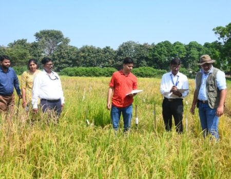 बिरसा कृषि विश्वविद्यालय (बीएयू) के चावल अनुसंधान प्रक्षेत्र में शुक्रवार को अंतर्राष्ट्रीय चावल अनुसंधान संस्थान (IRRI) की मॉनिटरिंग टीम ने