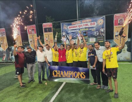 रांची | अग्रवाल युवा सभा, रांची की ओर से ए-स्क्वायर क्लब, कांके रोड में अग्रवाल फुटसल लीग सीजन-2 टूर्नामेंट का आयोजन किया गया। इसमें आठ टीमों के 56 खिलाड़ियों ने हिस्सा लिया। प्रतियोगिता में 12 लीग मैच, दो सेमीफाइनल और एक रोमांचक फाइनल मुकाबला खेला गया।