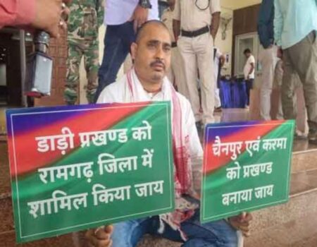 रांची | झारखंड विधानसभा के मानसून सत्र के चौथे और अंतिम दिन गुरुवार को सदन के बाहर मांडू विधायक तिवारी महतो अपनी मांगों को लेकर धरने पर बैठे हैं। उन्होंने मुख्यमंत्री हेमंत सोरेन से चैनपुर और कर्मा को अलग प्रखंड का दर्जा देने और दाड़ी प्रखंड को रामगढ़ जिले में शामिल करने की मांग की है।